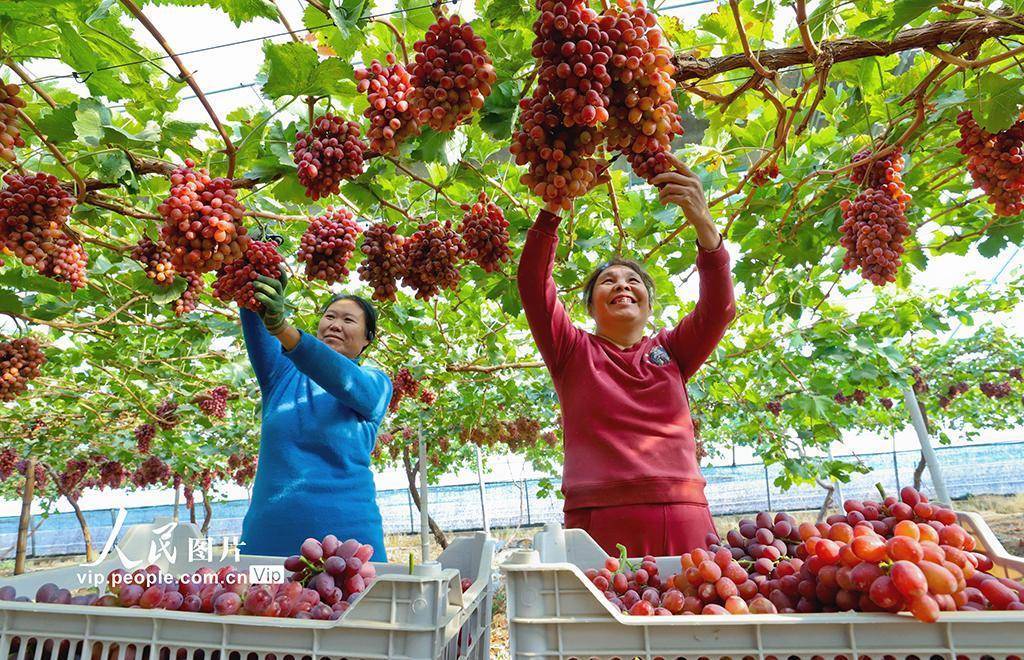 近年来,临泽县以黑河北岸荒漠带为重点,瞄准错季鲜食葡萄高端市场,全力推动种植良种化、生产标准化、经营产业化、服务社会化,助推葡萄产业提档升级。王将摄(人民图片网)